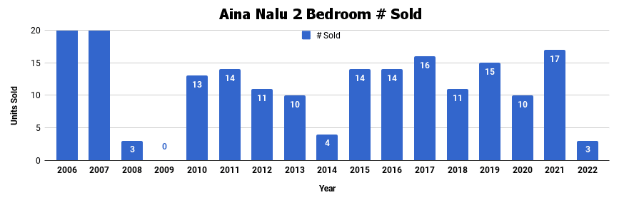 - 2021 was a historic year in Real Estate all over Maui, and Aina Nalu was no exception to that. There were 17 units sold, which is record setting for the complex.