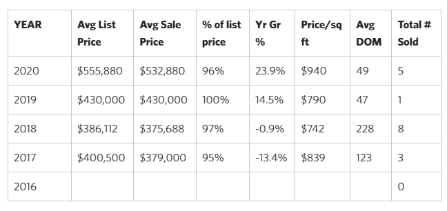 - In the studio sector – 5 of the 7 units that have sold, did so at 100% of list price. One of them was $20K over asking. On the 1 bedroom side, both units that did sell sold 100% at or above list price. That’s 6 out 8 all 2020 sales at-or-above full price.-2 units are actively listed for sale.
