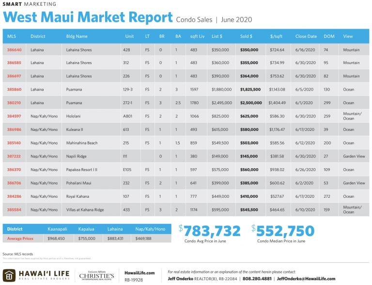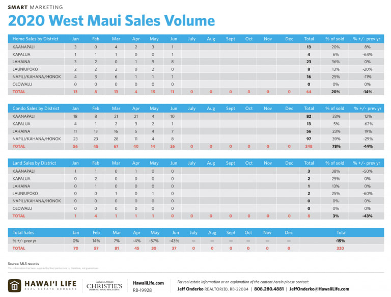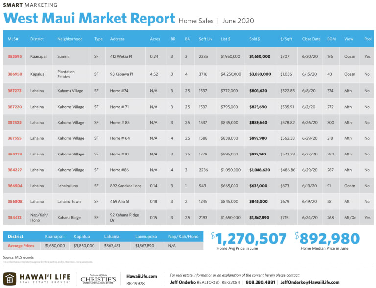 As it is my commitment to keeping the local community informed, I am pleased to share with you the most recent West Maui home, land, and condo sales reports for your review — covering KaanapaliKapaluaLahaina, and Launiupoko. You’ll find real estate sales volume, days on market, list versus sold price, price per square foot, and significantly more.