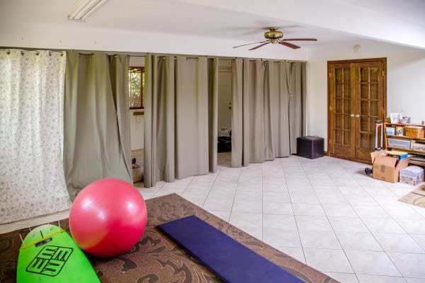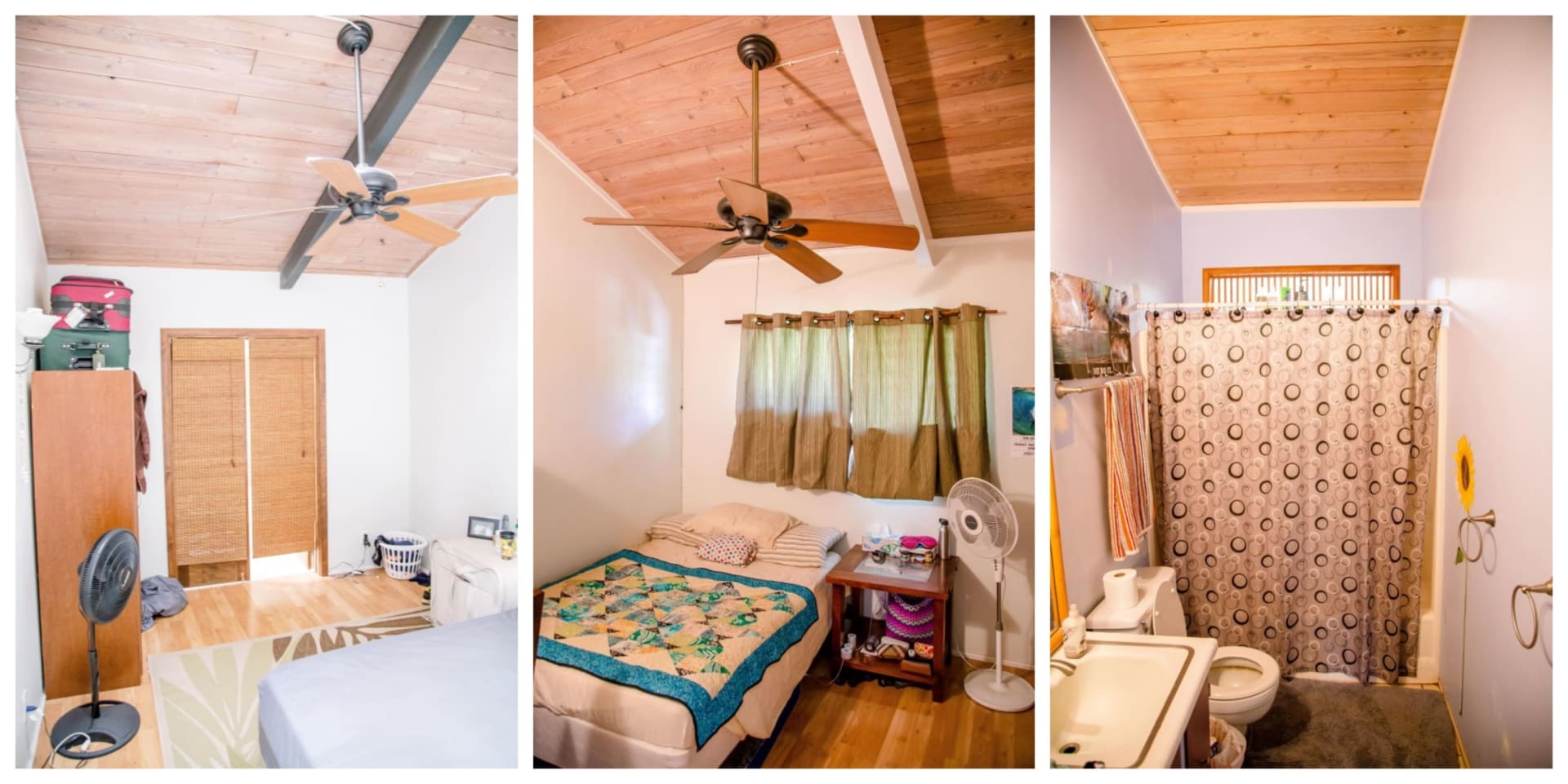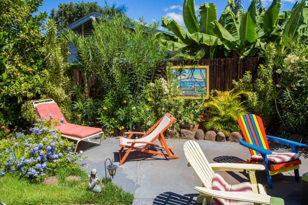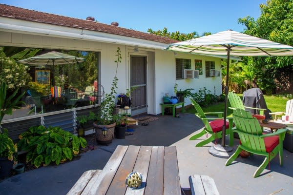 Outside on the patio, concrete was poured creating a back porch suitable for lounging, dining, or entertaining. The landscaping is adorned with tropical plants, flowers, and trees such as mango, banana, and the rare Pua Kenikeni Hawaiian Tree, which produces flowers for lei making.