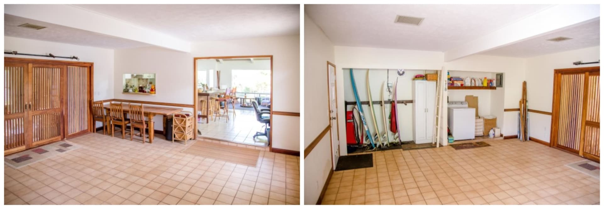 While this utility room space of approx. 500 sq. feet is currently non-confirming and does not show up on the 1,628 sq. ft. footprint of the house, the total sq. footage under roof is 2,000+. This property lot size is 7,527 sq. ft. allowing for a permitted ohana dwelling of 500 sq feet. Buyer to do their own due diligence.