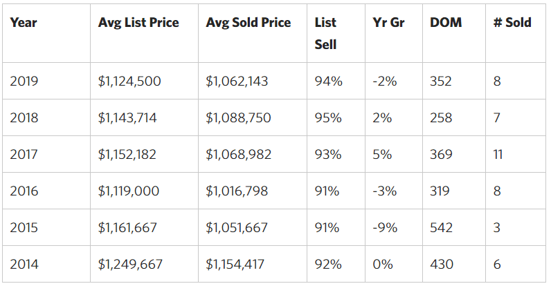 - Days on Market from time of listing to closing is averaging 352 days for 2019