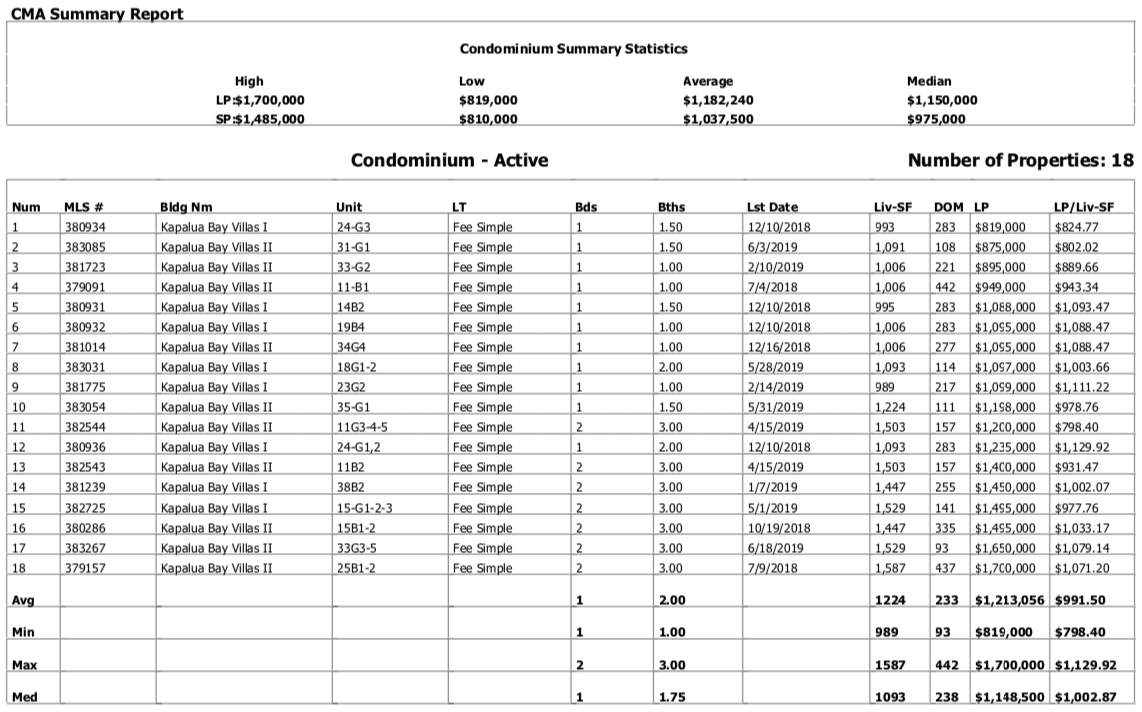 - List Price vs. Sold Price: see how the final sales price compares to the listing price