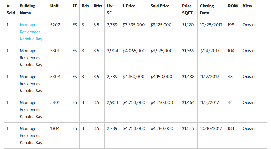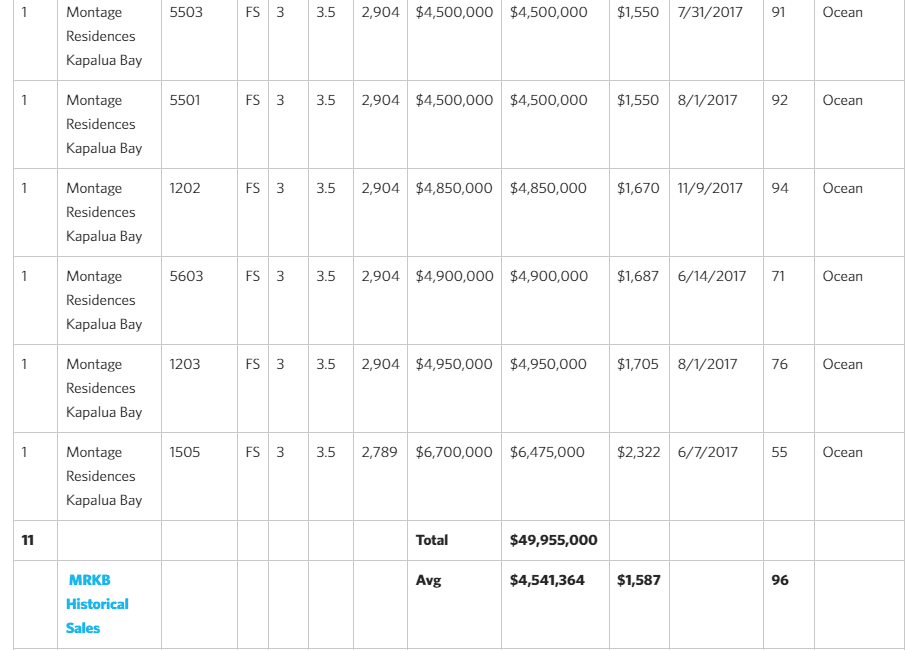 - The Montage’s $49M in sales is 48% of the entire Kapalua district sales dollar volume amount (with just 11 transactions)