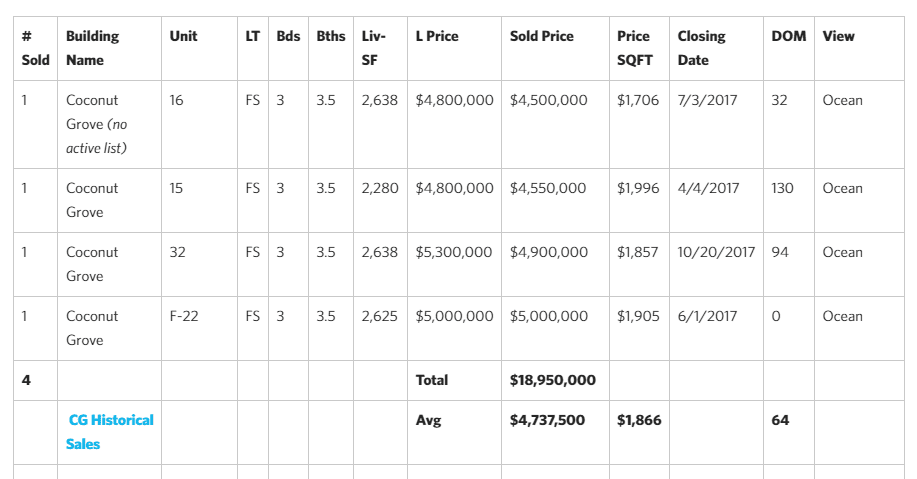 - Most Expensive Address – It’s a toss up. Coconut Grove averaged a higher price, but Montage Residences had more $4M+ sales