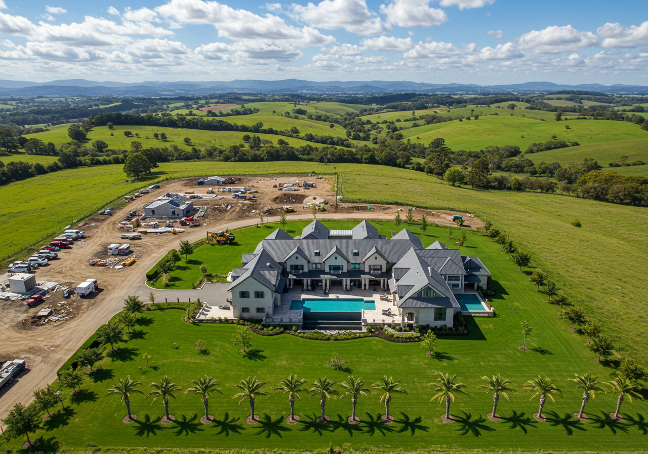 So back to the NEW information and opportunity – instead of the option-only model A-B-C-D homes for sale, several specified home site lots ranging in sizes 1-4 acres are now available for purchase. Civil ground work has been completed including access roads and underground utilities.