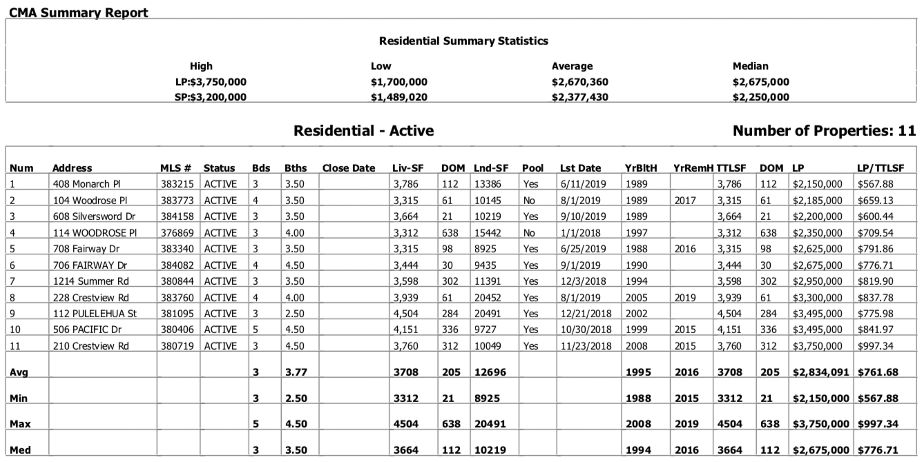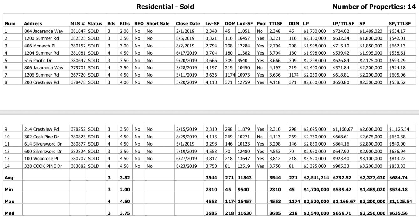 - List Price vs. Sold Price: see how the final sales price compares to the listing price