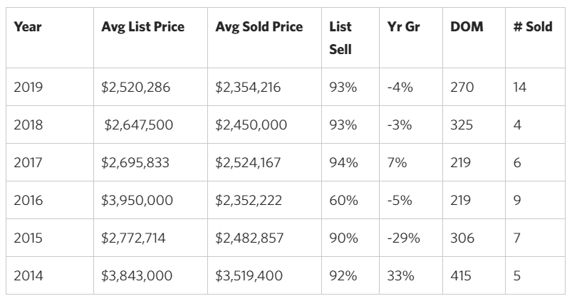 - Days on Market from time of listing to closing is averaging 270 days for 2019