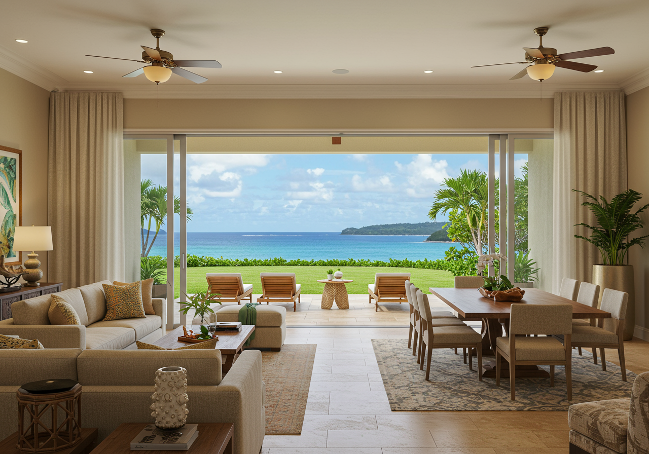Poised high on the hill, enjoy expansive and unobstructed ocean and island views set on over 1-acre of neatly landscaped tropical grounds. Great for entertaining, this single-level home features an open concept kitchen, living, and dining areas that highlight its vast top of the neighborhood views and private location. In addition to views, the master bedroom contains a large custom walk-in closet and bathroom ensuite accompanied with dual vanities, shower, and scenic whirlpool tub.