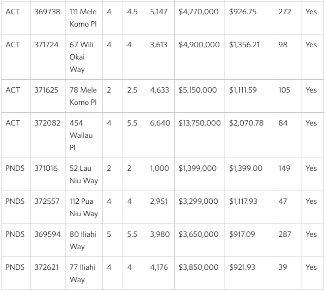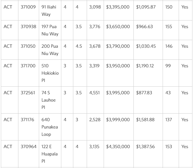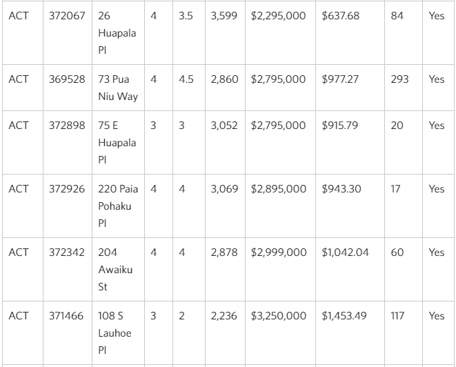 In all, there are 55 properties listed over $3M, 6 exceed $15M asking price, and the highest is $20M. Launiupoko comprises 22% (12) of the entire $3M+ West Maui inventory, with the highest list price at $13.8M.