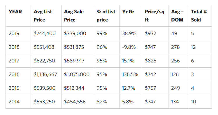 - 2019 Avg Sales Price – $739,000 (+39%).