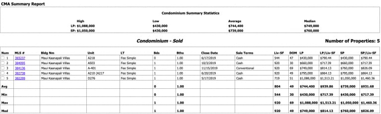 - List Price vs. Sold Price: see how the final sales price compares to the listing price