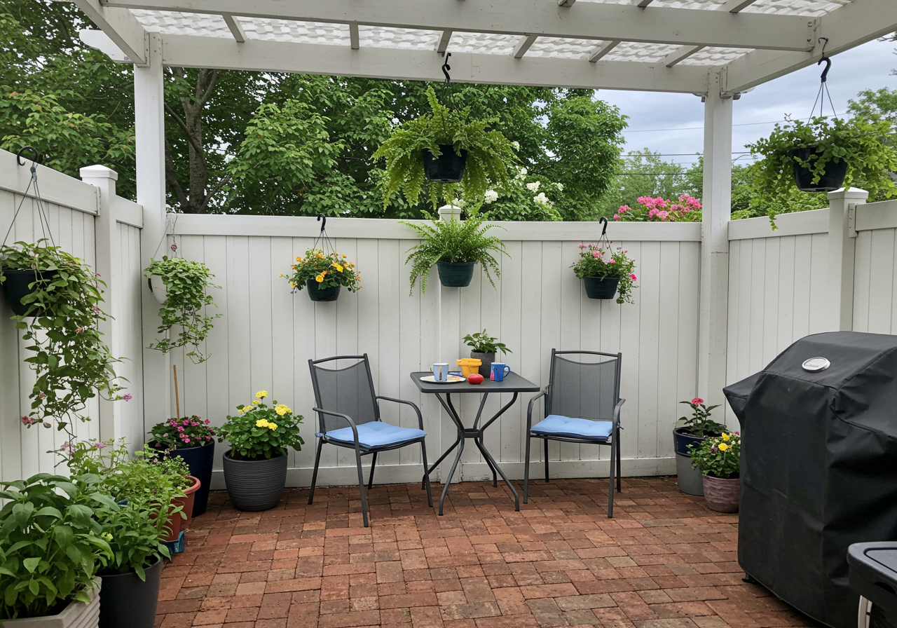 Fenced in private backyard – Unit #106’s backyard comes with paver deck & herb garden that includes a drip sprinkler system.