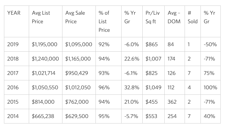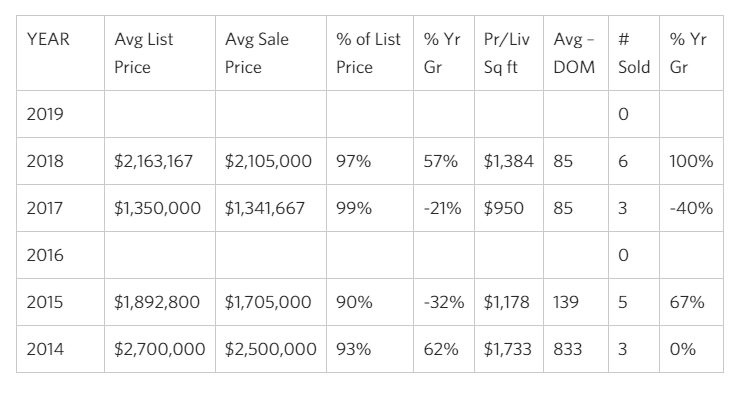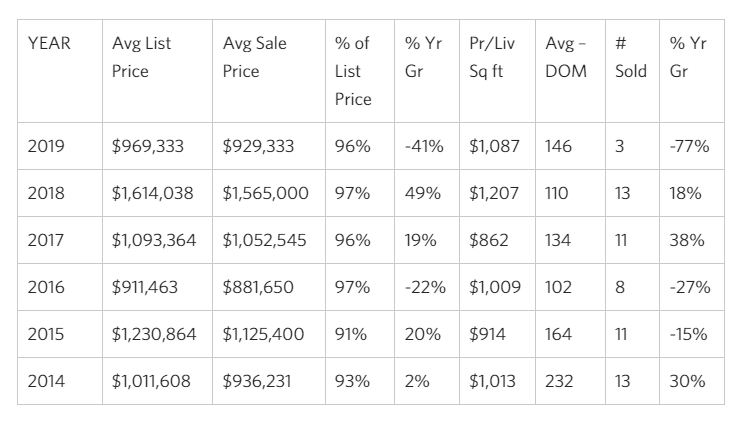 While 2019 sales prices may look down, it’s necessarily not the case as Puamana had multiple large oceanfront sales in 2018.