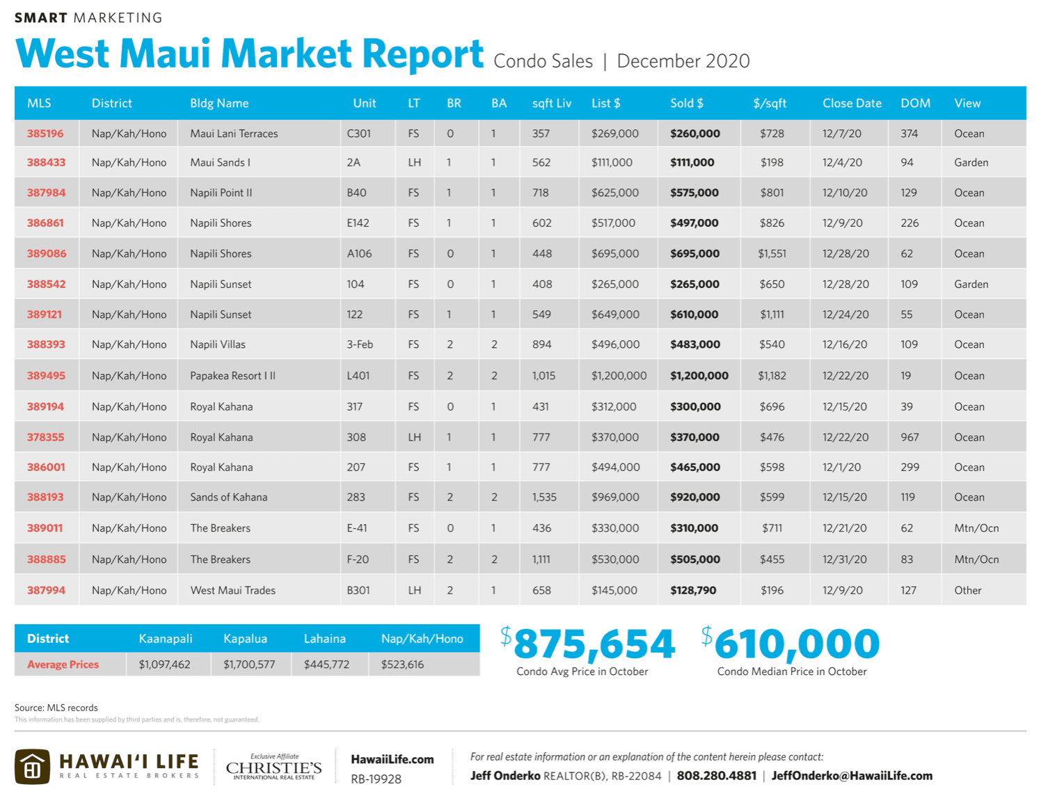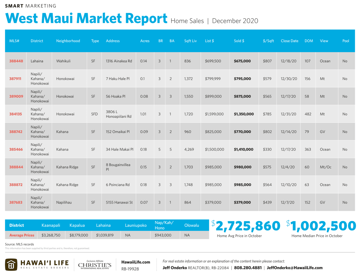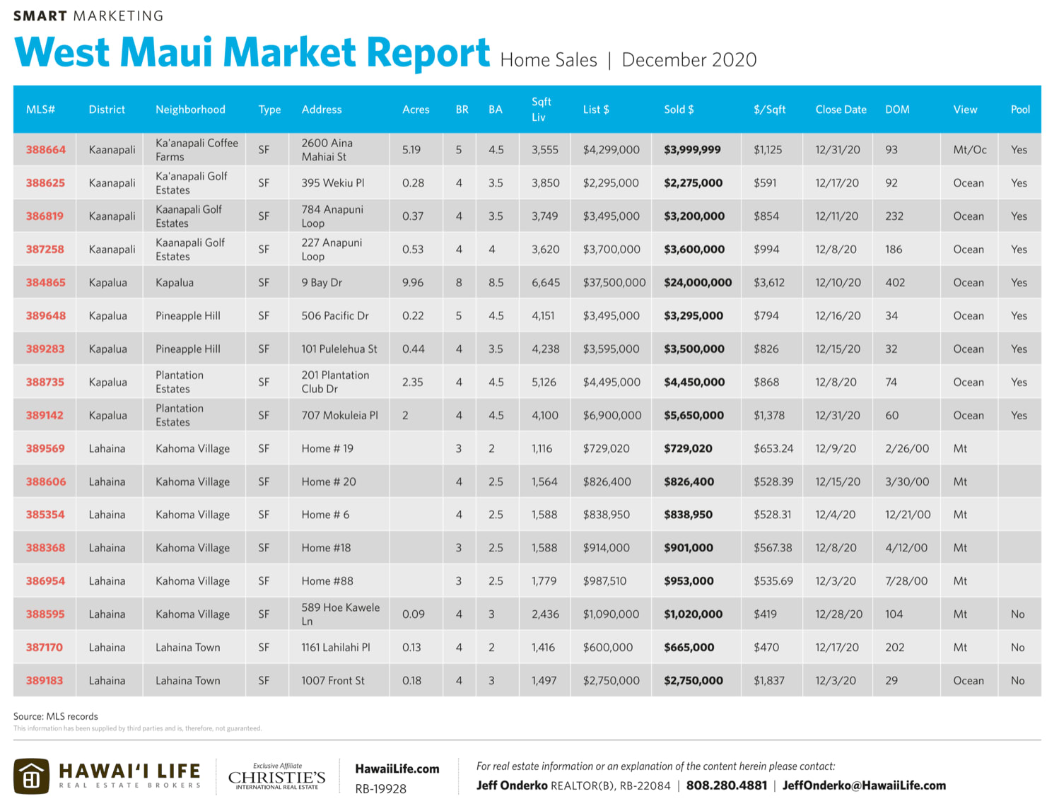 - For the year, West Maui alone had (10) trades $5M+ (5) trades at $8M+ and (3) north of $14M. By far the strongest of any single period in West Maui history. Prior to 2020, only 2 properties had ever sold for more than $14M.