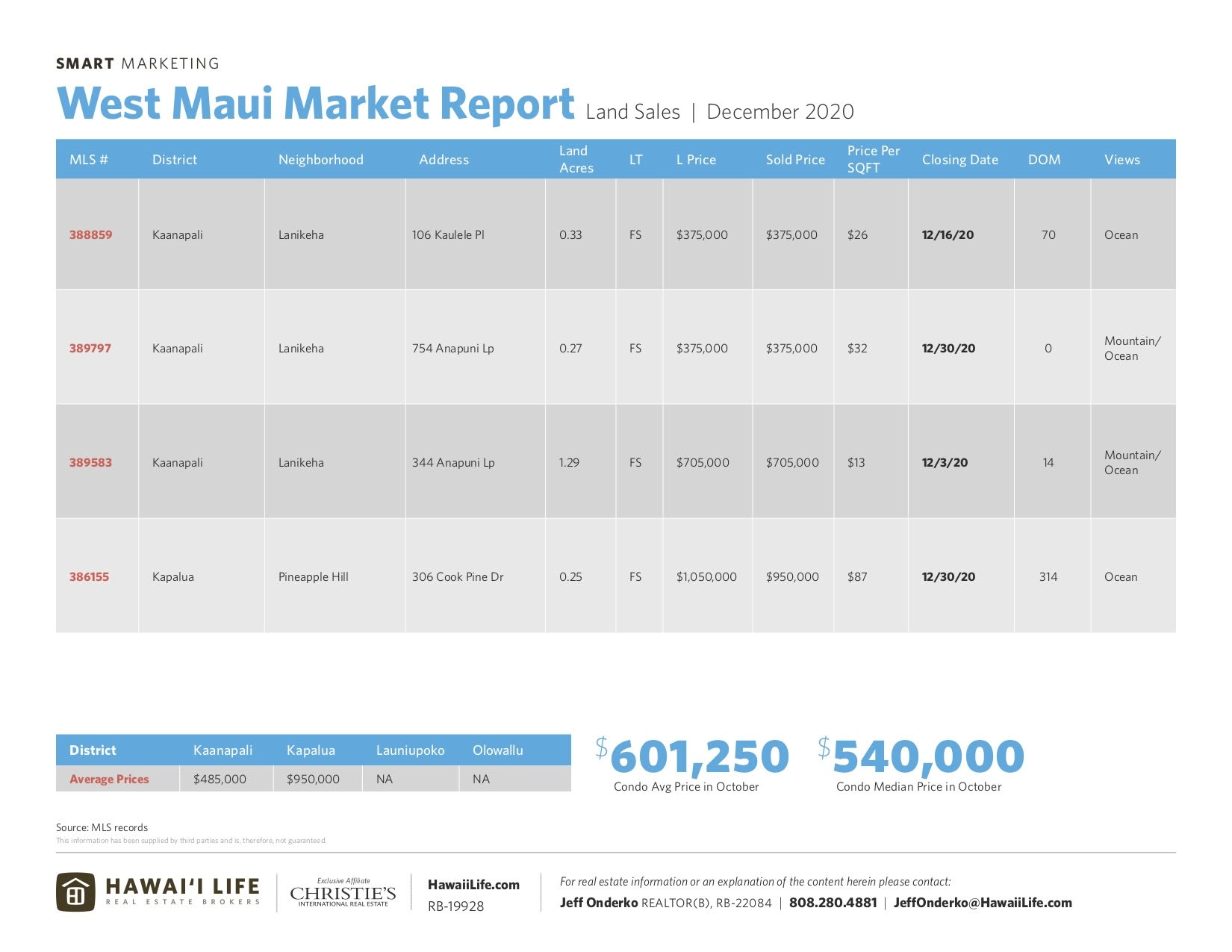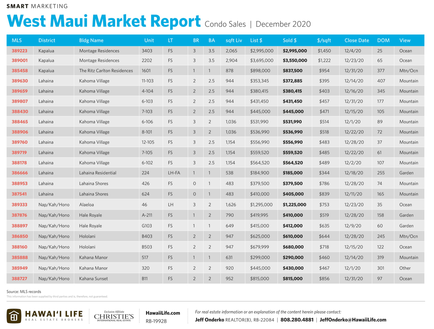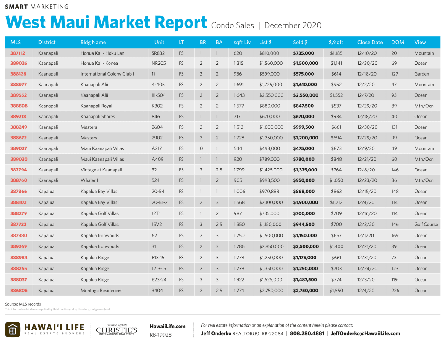 - For the year, West Maui alone had (10) trades $5M+ (5) trades at $8M+ and (3) north of $14M. By far the strongest of any single period in West Maui history. Prior to 2020, only 2 properties had ever sold for more than $14M.