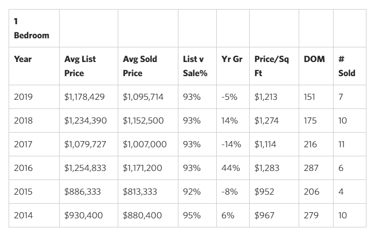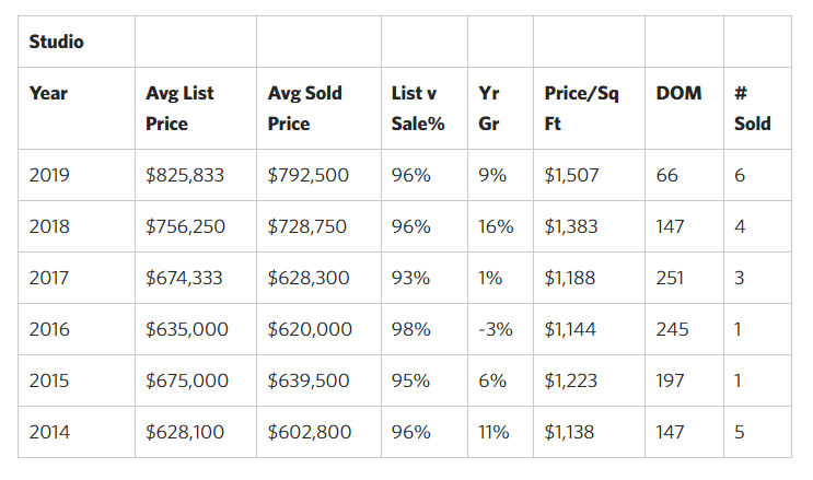 - Studio & 1-bedroom units particularly have been in high demand producing 13 of the 16 sales and spending just 66 & 151 days average time on market from day listed to closing.