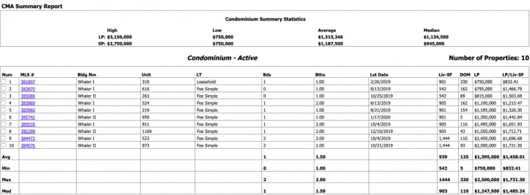 - List Price vs. Sold Price: see how the final sales price compares to the listing price
